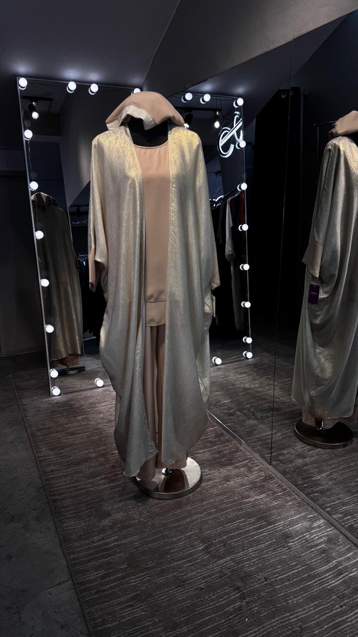 This luxurious Cord set is made of Shimmer Crepe robe and Nida inner, which is smooth and pleasant to skin and decorated with beads and comes with a Matching Hijab.
