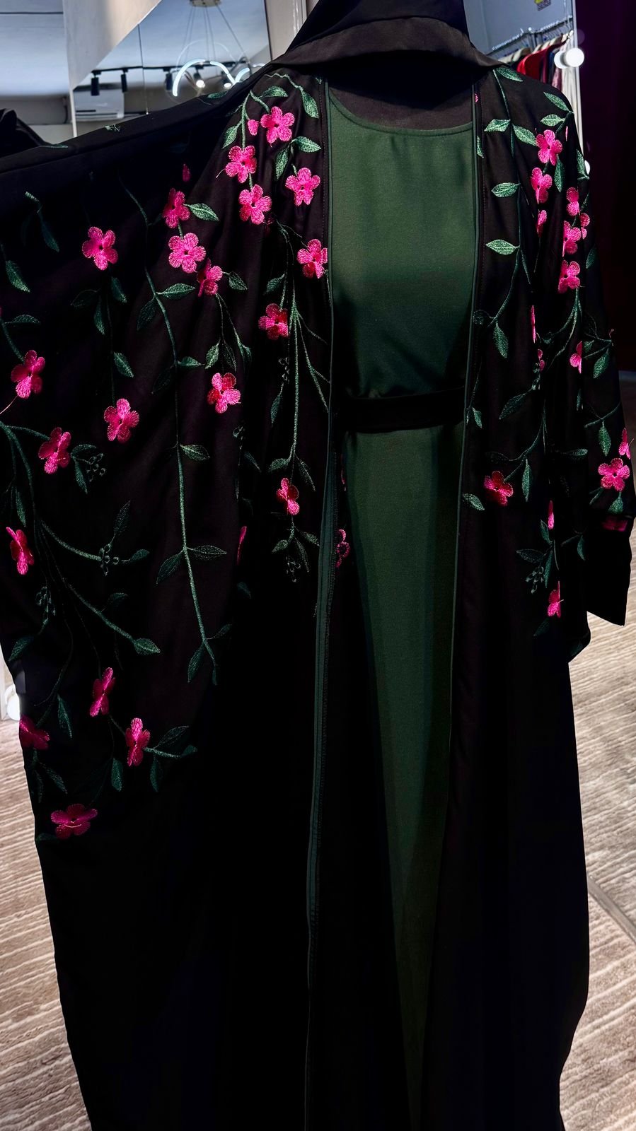- What does it include: Abaya-robe, Inner-Dress, Belt and matching Hijab