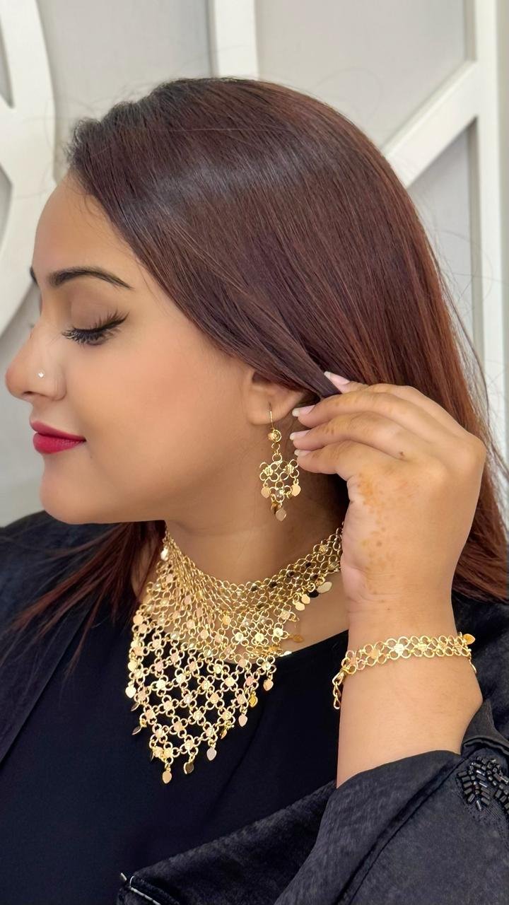 This is a beautiful Choker necklace set is perfect for a variety of occasions and outfits. It’s perfect for weddings, parties, and events. Its come with Choker necklace, Earing and Bracelet. The Choker necklace set is one size fits all.