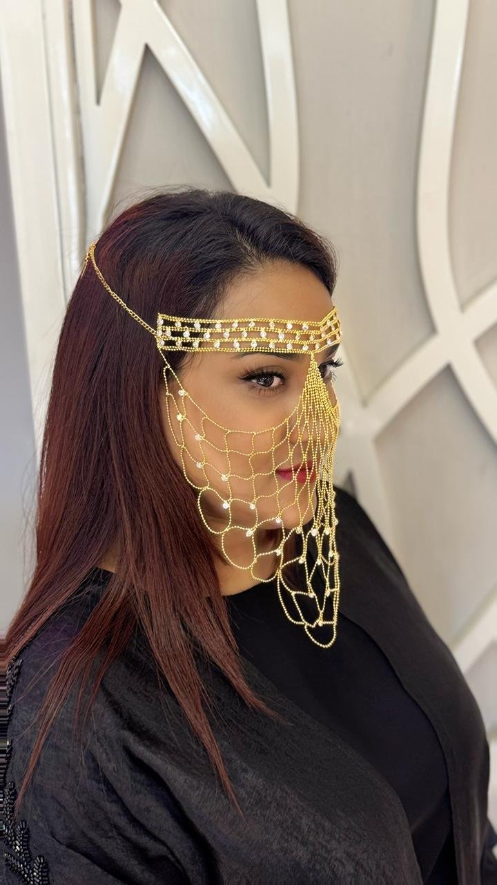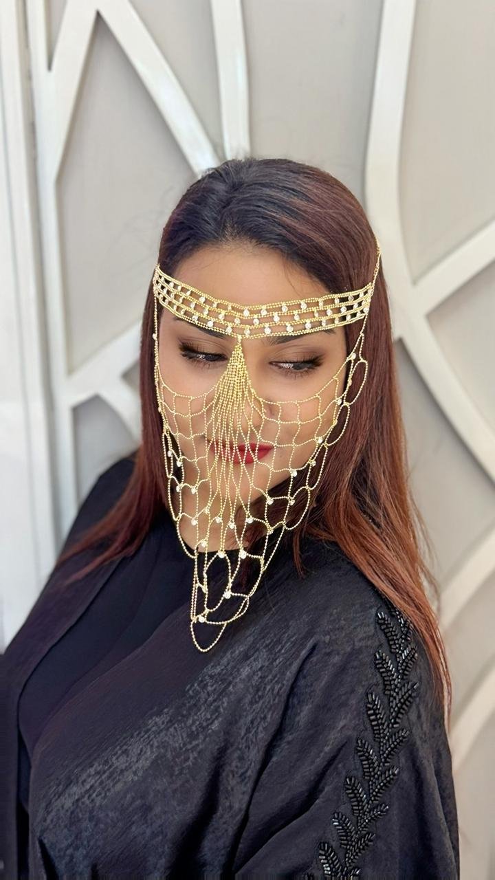 This is a beautiful Niqab Jewelry is decorated with Crystal Stone . It’s perfect for weddings, parties, and events. It look stunning over Niqab and over your face. The  Niqab Jewelry is one size fits all.