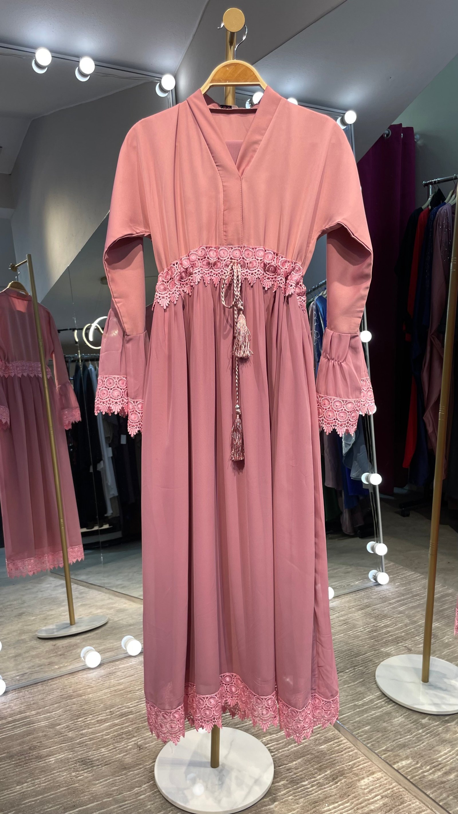 - What does it include: Dress with matching Hijab (built-in tassel belt)