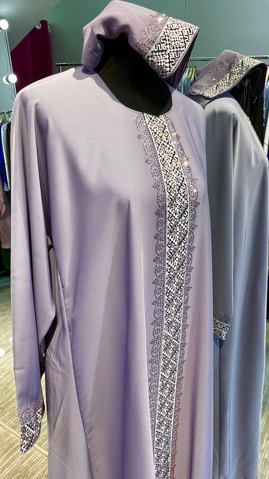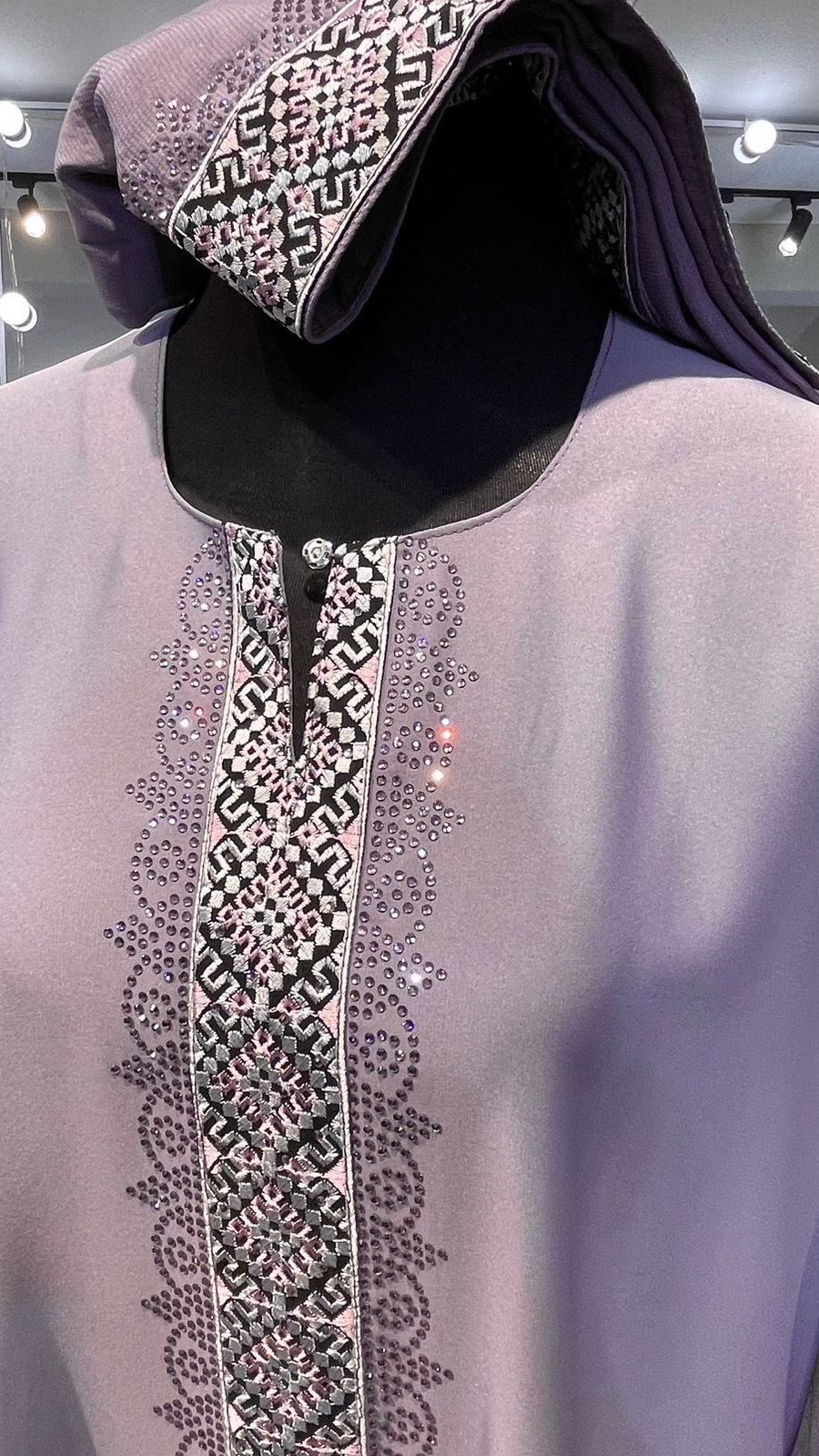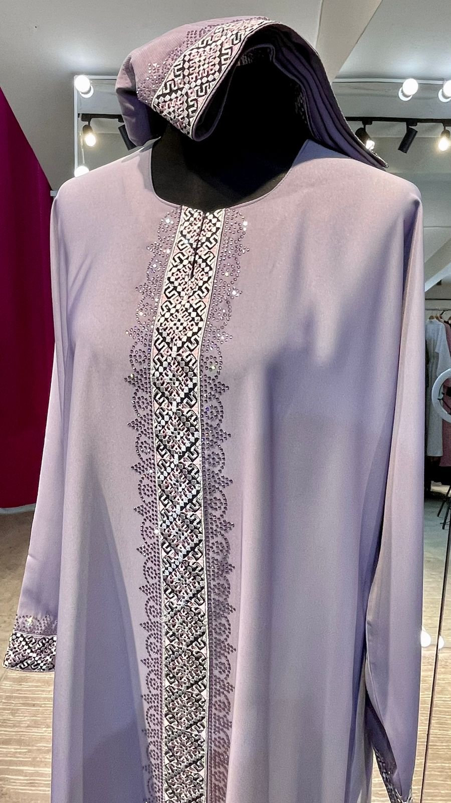 Lavender Nida Abaya with Embroidered lace and stones.Lavender Nida Abaya with Embroidered lace and stones.
